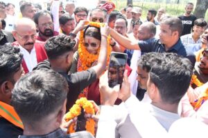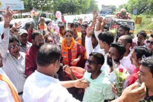 भरतपुर सोनहत विधानसभा से भाजपा प्रत्याशी रेणुका सिंह का सोनहत में आतिशी स्वागत